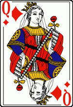 Chủ về sự đi lại, lưu động, sự suy tính nhanh nhẹn, nóng nảy, tượng trưng cho người đàn bà trực tính, ăn ngay nói thẳng, nặng về thực tế, vật chất, hơn là vấn đề tinh thần, tình cảm. Nếu đi với các lá bài Cơ, các lá bài Rô, hoặc các lá bài Chuồn thì làm gia tăng độ số tốt đẹp của các lá bài này thêm lên. Nếu đi với các lá bài Bích, thì mọi sự việc khó xoay trở, không tiến hành được, tiến thoái lưỡng nan, cẩn thận trong sự đi lại.